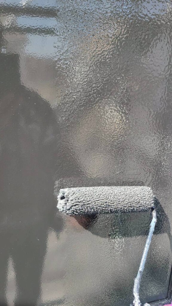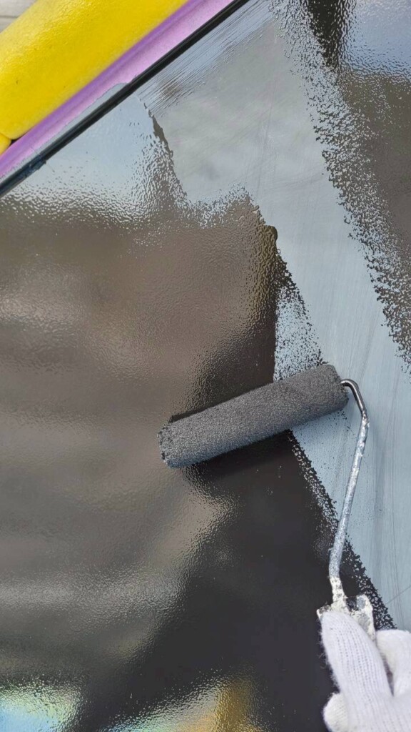 ハケが乾く前にローラーで一気に塗ります!