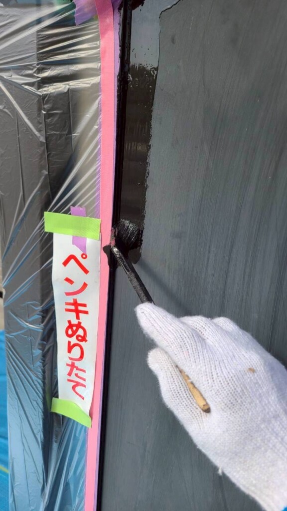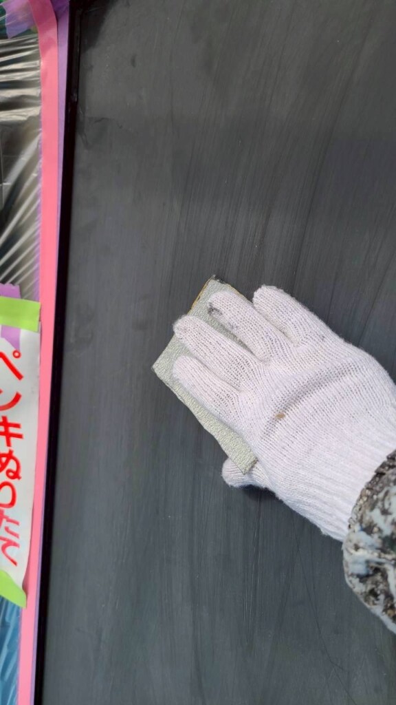 紙ヤスリで目荒らしをし塗料の密着を高めます!