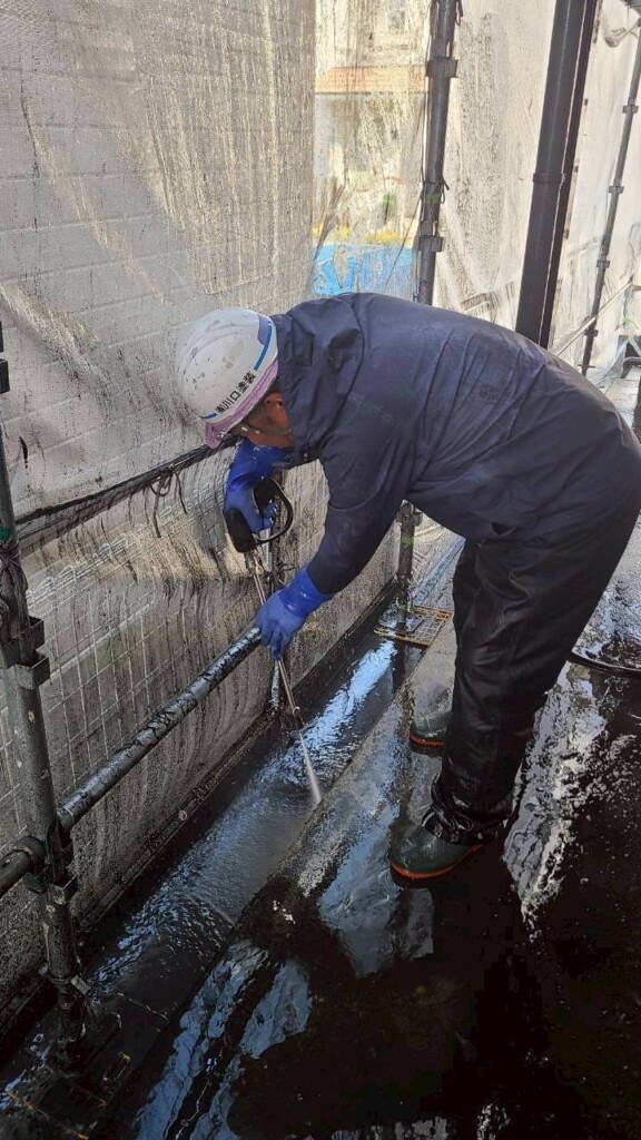 シッカリとした高圧で洗い流し、塗装前にリセットします。