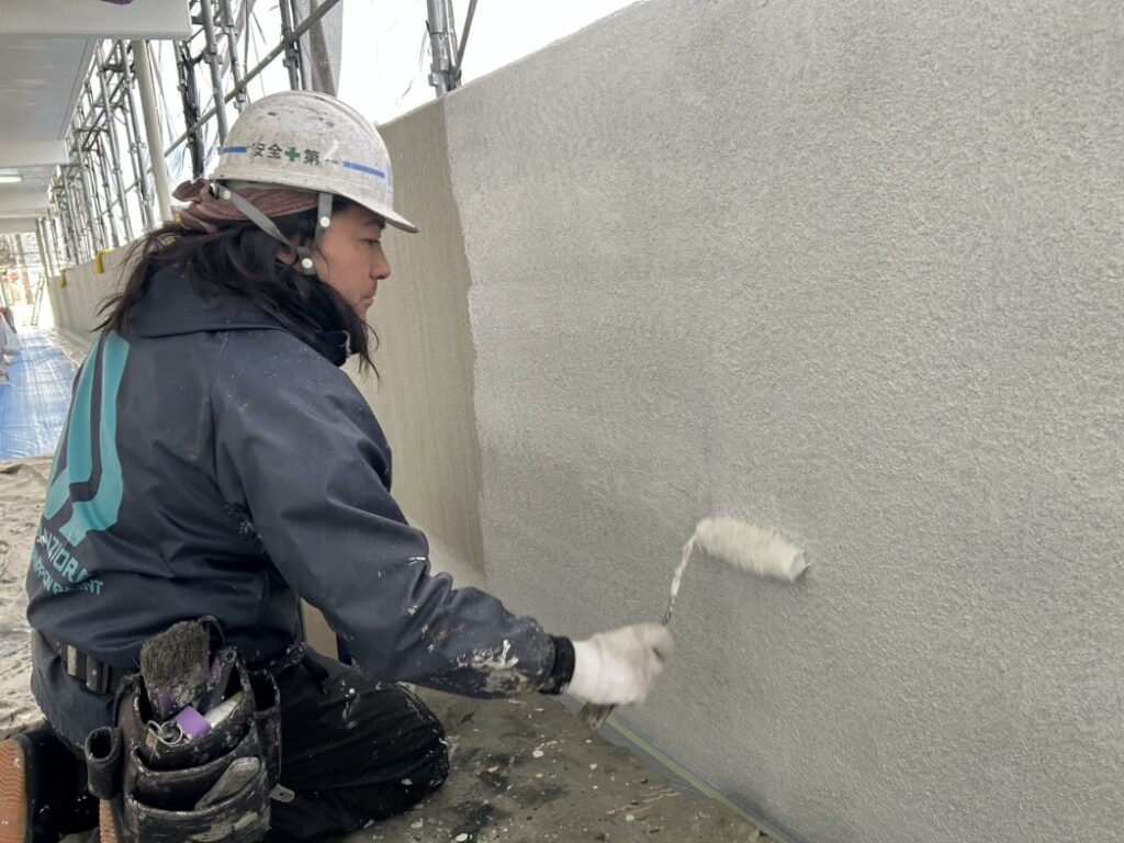 岡崎市マンション塗装工事|下塗り作業