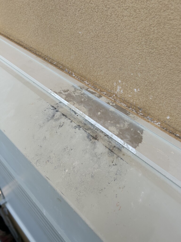 洗浄時にサッシが鳥糞まみれになっており頭上を確認するとデザイン飾りがついており