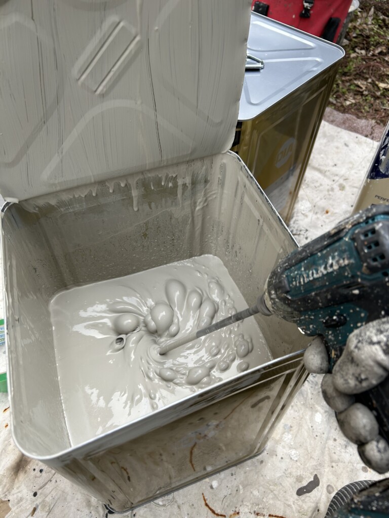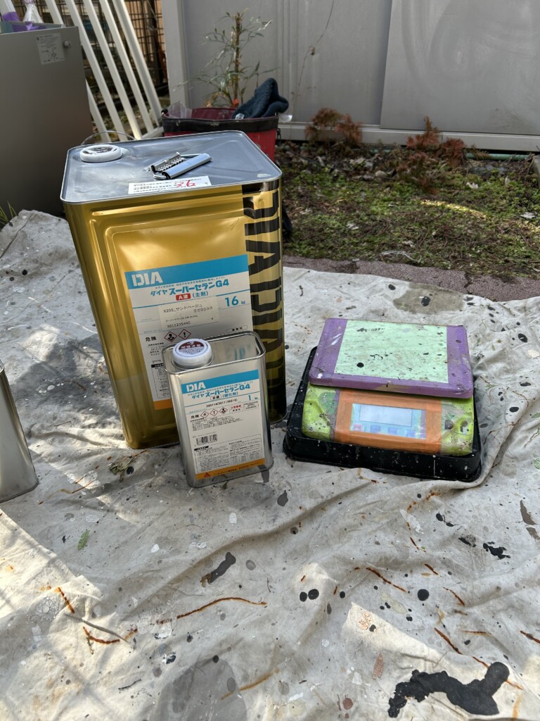 2液塗料ですのでデジタル秤で計量し入念に撹拌します!