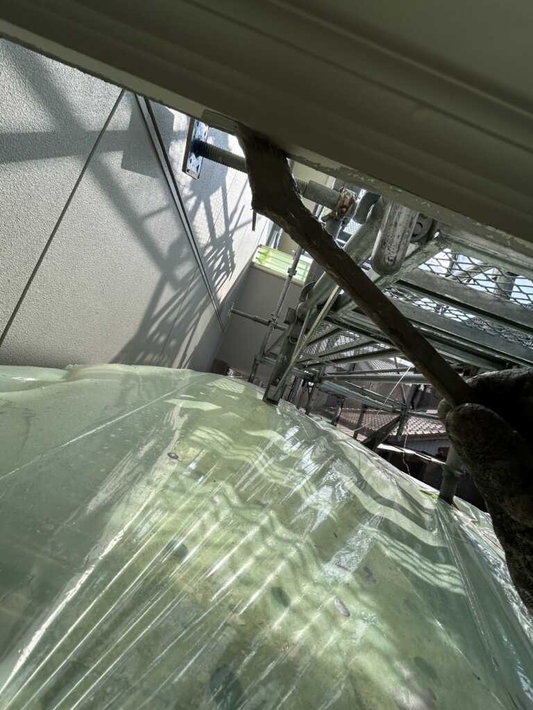 解りづらい画像ですが外壁の小口(厚み部)はローラーで塗るとはみ出してしまい仕上がりが悪くなるのでハケで塗ります!