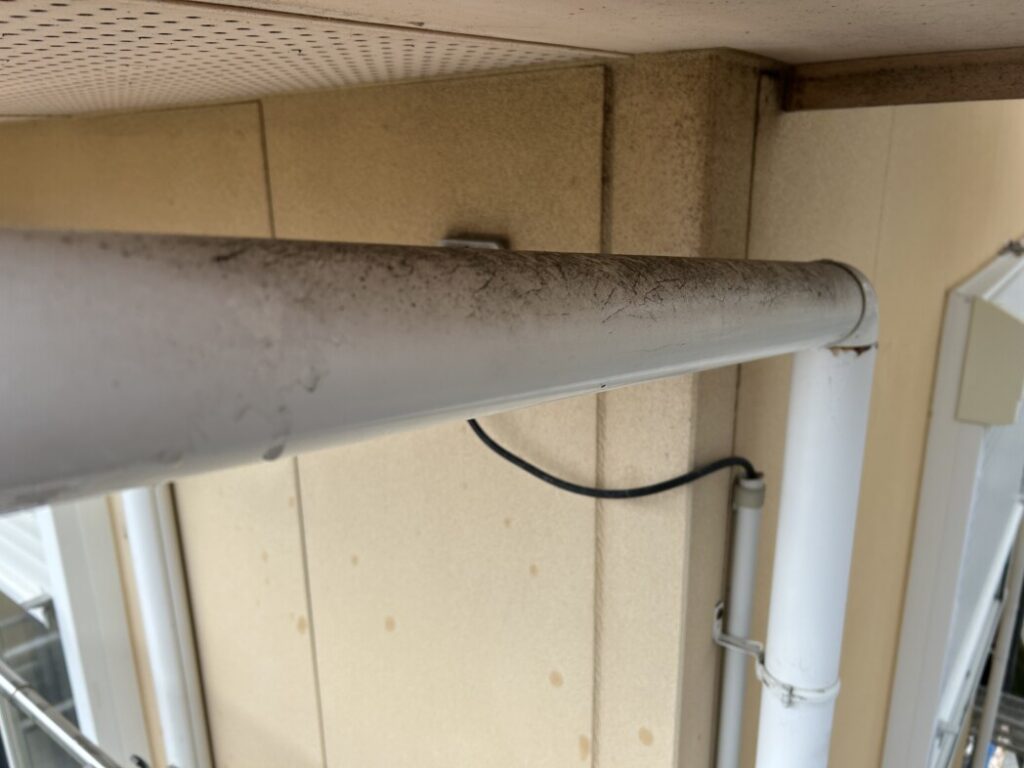 画像の縦樋の汚れですが、十数年のホコリが蓄積されかなり汚れております!