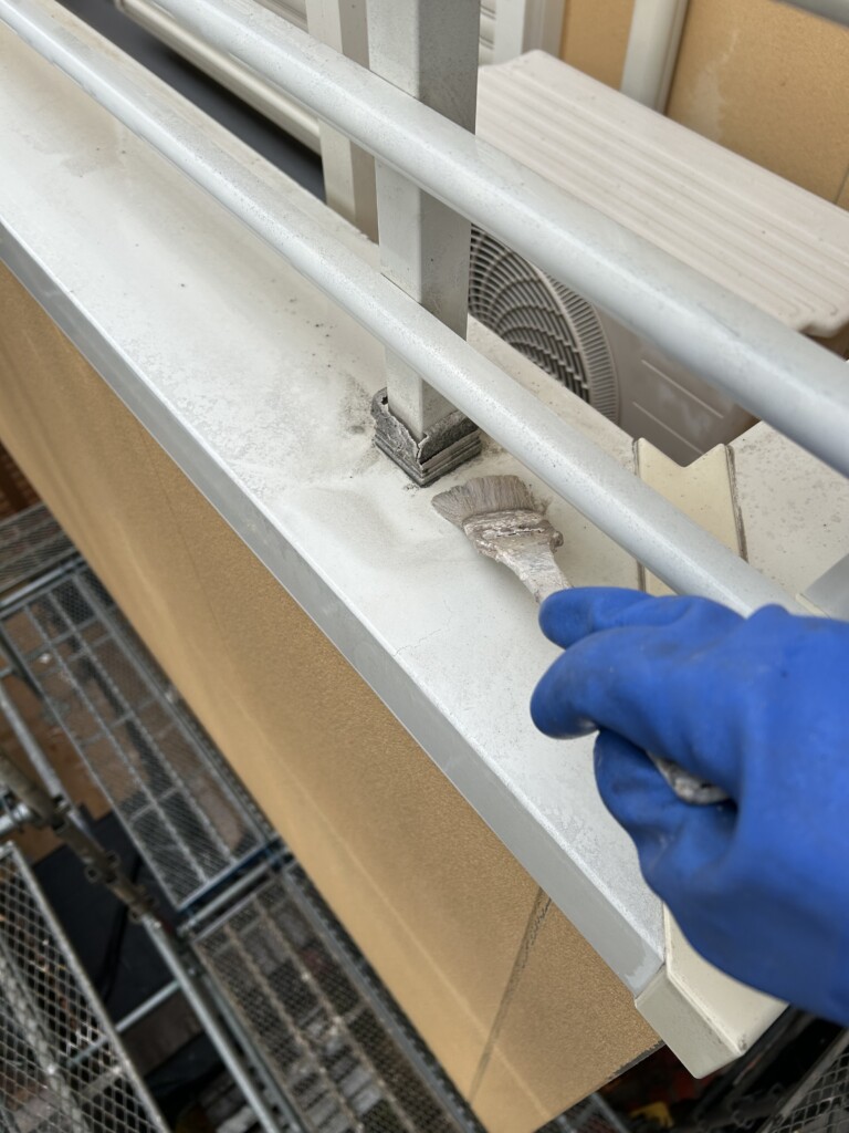 手洗いする事により高圧洗浄機よりも綺麗な状態にして塗装します。