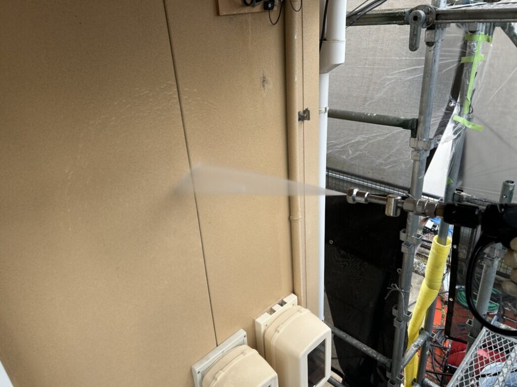 外壁の洗浄作業中!